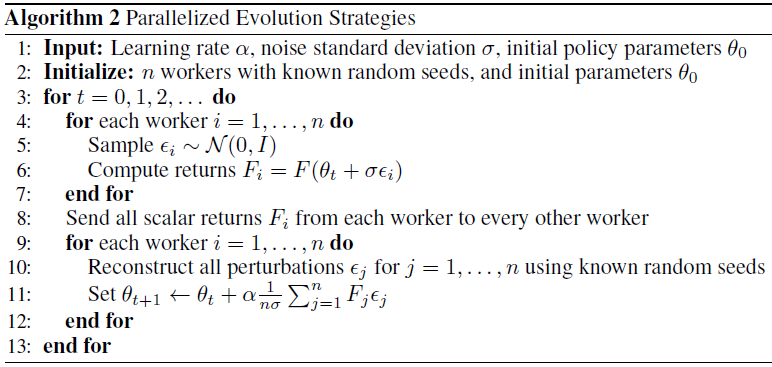 简单的并行 ES 版本如下,主要创新点是利用了已知的随机种子: