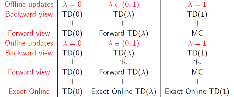 一张图总结一下前向视角与后向视角 TD(λ) 的异同