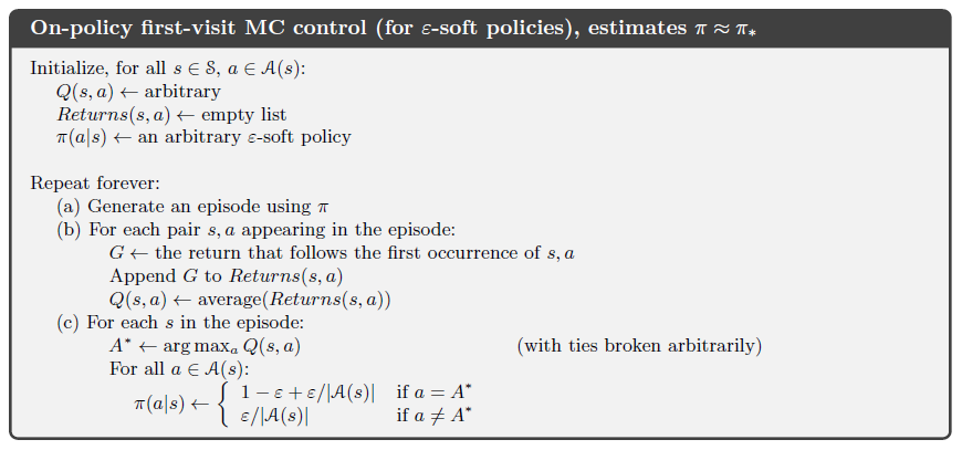 同策略蒙特卡罗控制 On-Policy Monte-Carlo Control