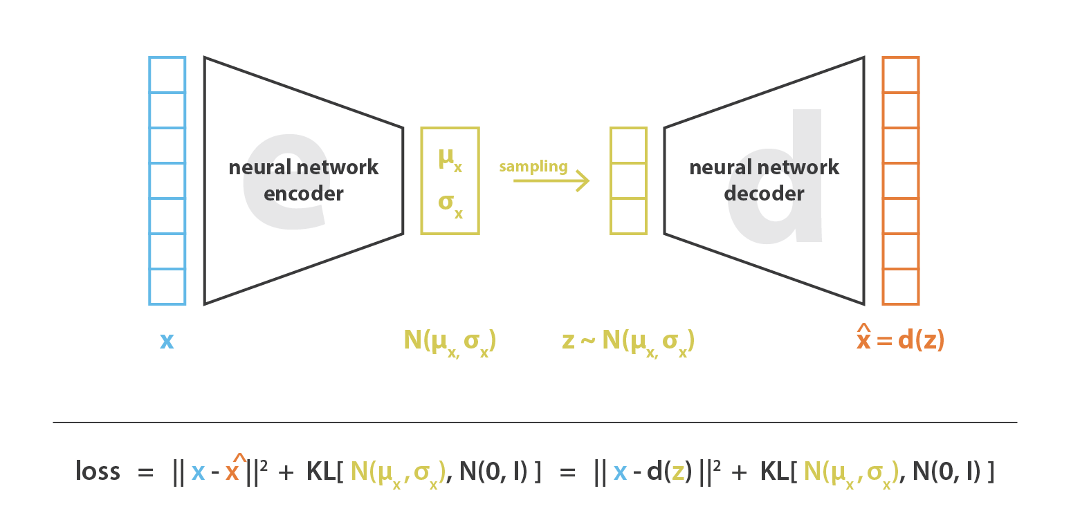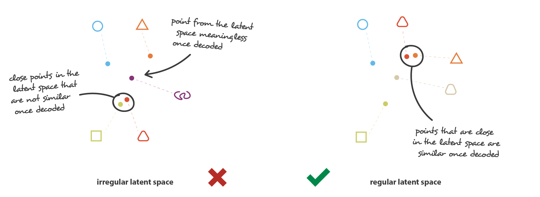 为了能够将我们的 autoencoders 的 decoder 用于生成数据,我们必须确保隐空间足够正则化。一种解决方案是在训练过程中显式地正则化。 因此,可以将 variational autoencoders 定义为一种 autoencoder,这种 autoencoder 能对其进行正则化训练以避免过拟合并确保隐空间具有能够生成数据的良好属性。