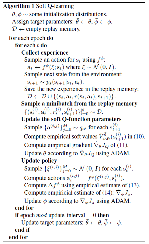 Haarnoja, T., Tang, H., Abbeel, P., & Levine, S. (2017). Reinforcement learning with deep energy-based policies. arXiv preprint arXiv:1702.08165.