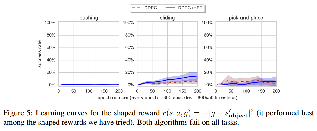 无论使用怎样的reward shaping函数,DDPG、DDPG+HER都不能解决这个问题
