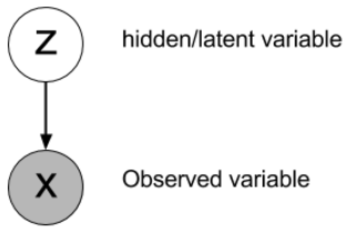 假设 \(X\) 是观测值(数据),\(Z\) 是隐变量。注意隐变量也可能包含参数。这两种变量之间的关系可以用如下图模型表示: