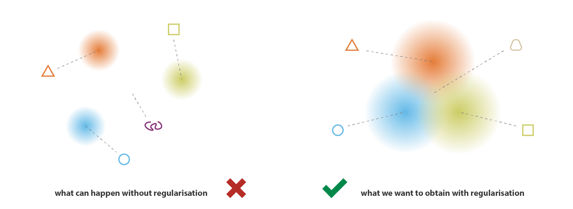 其实这种现象是很正常的。 在 autoencoders 的任务中,autoencoders 仅仅尽可能减少重建损失而不在乎如何组织隐空间。 因此,如果我们对架构定义不好,那么在训练期间,神经网络会利用过拟合来尽其所能来完成其任务,除非我们对其进行正则化。