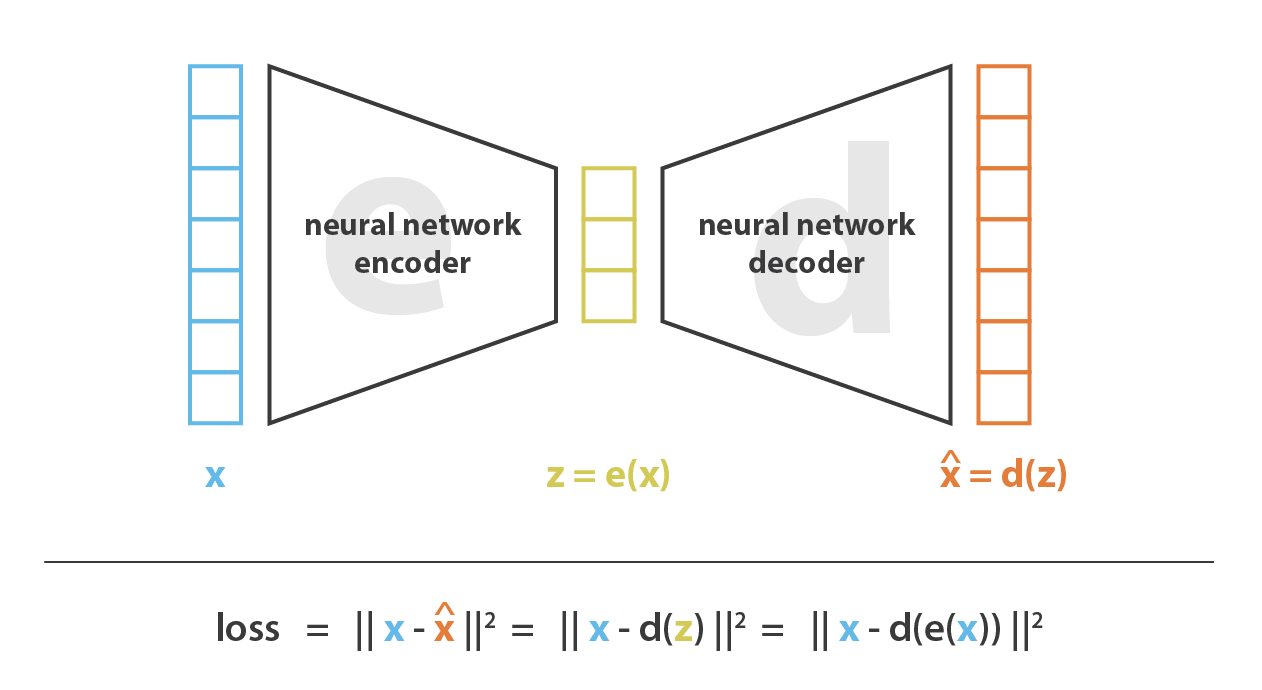 因此,直观地讲,整个 autoencoders 架构(encoder + decoder)会造成一个数据的瓶颈,从而确保只有信息的主要部分可以通过 autoencoders 并进行重构。从我们的通用框架角度来看, encoder 的神经网络结构定义了一系列的 encoders \(E\) ,同理 decoder 的神经网络结构定义了一系列的 decoders \(D\) ,通过最小化梯度下降这些网络的参数来完成对 encoder 和 decoder 的搜索,以最大程度地减少重构误差。